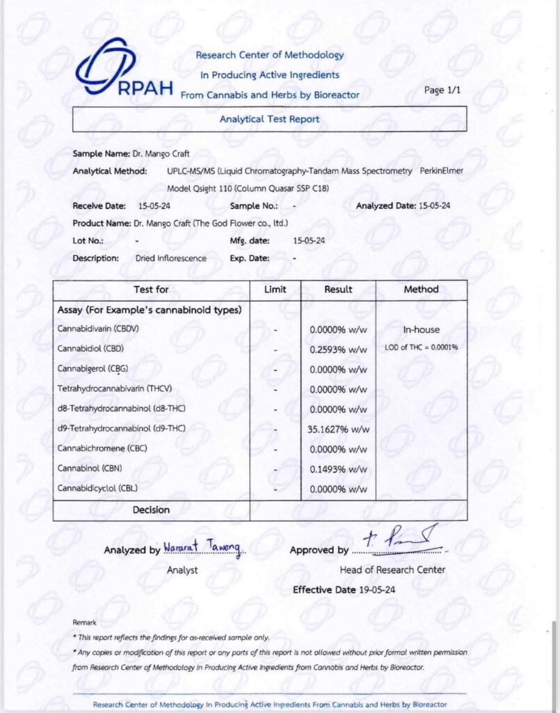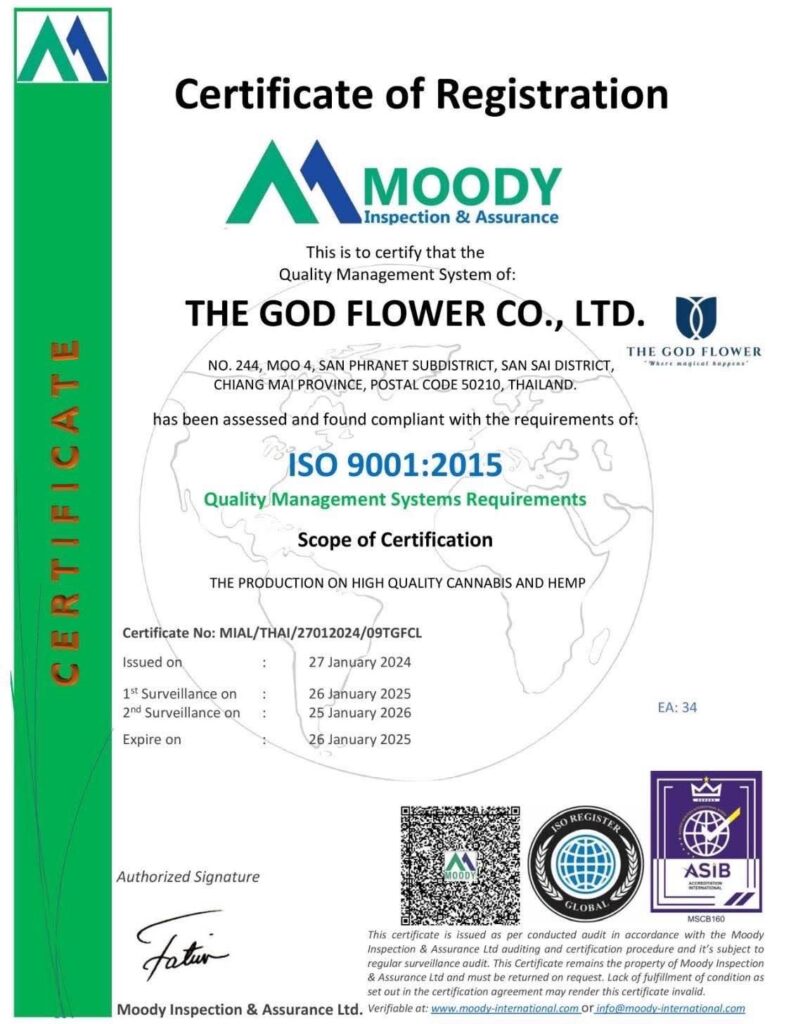 Welcome to The God Flower – where expertise meets nature’s finest in the heart of Chiang Mai, Thailand. As a legally certified cannabis farm operating under ISO 9001:2015 standards, The God Flower is dedicated to cultivating premium, organically grown cannabis flowers using a fully controlled, closed-loop system. Our commitment to excellence begins at the very roots of our process, with fertilizers meticulously crafted in-house from a variety of fermented fruits, ensuring a purely organic approach from start to finish.